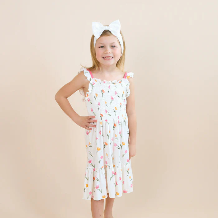 Turn up the charm with this smocked dress that’s as sweet as can be. A smocked bodice stretches for a comfortable fit, while the soft, breathable fabric stays cool even on warm days. A ruffle hem gives it flounce and flair to add a playful touch to the sweetest look.