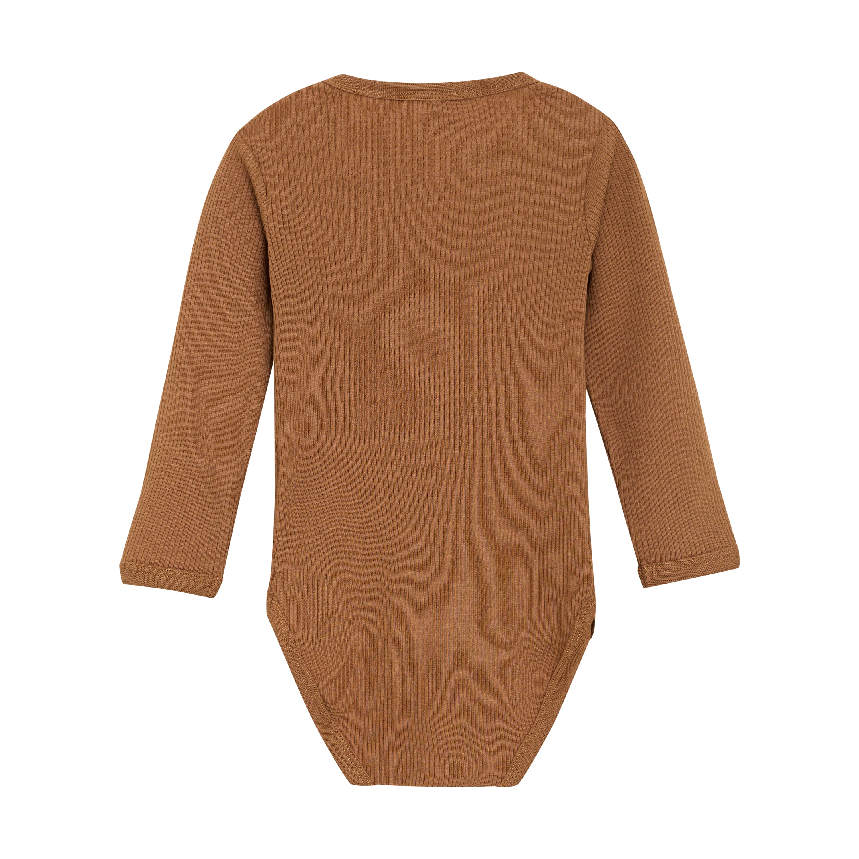 Cute long-sleeve ribbed bodysuit. Made from a soft and comfortable fabric, it features practical snap buttons between the legs.