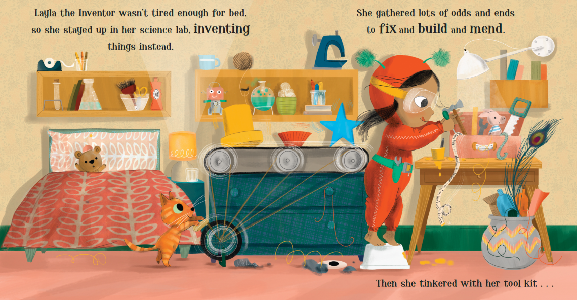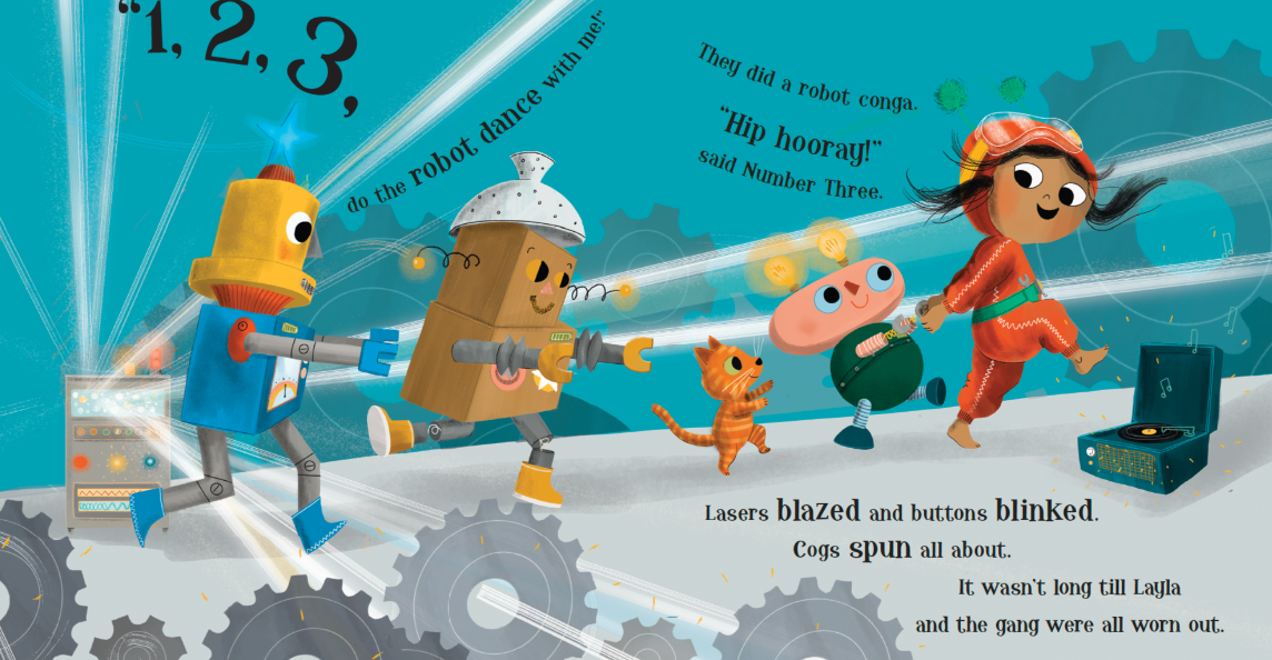 Time for bed? Not for inventor Layla! And what's better than one robot friend? A whole lot more!