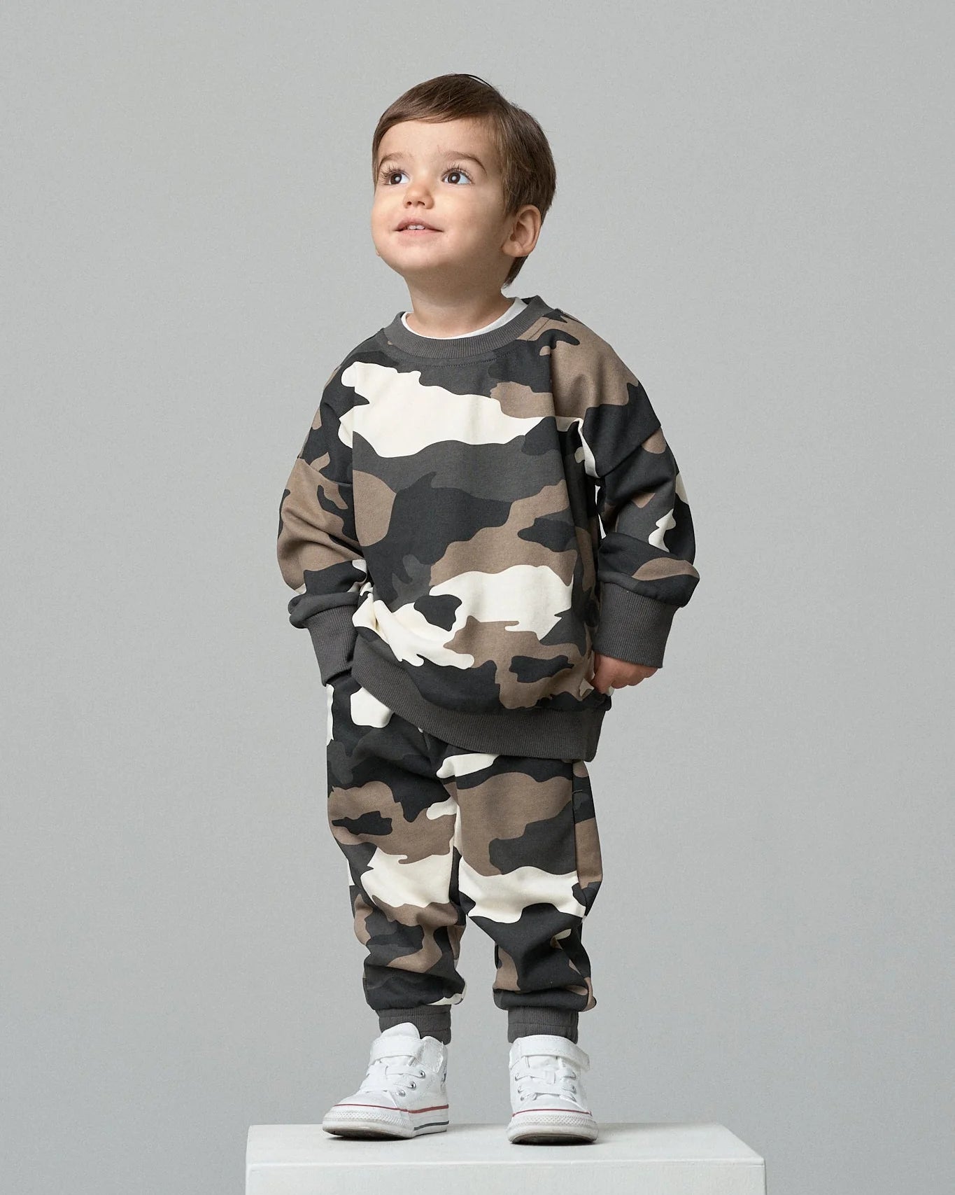 The Camo Crewneck keeps things effortless with its relaxed fit, ribbed trim, rollable wrist cuffs, and custom camo print—finished with our signature “LB” embroidery.