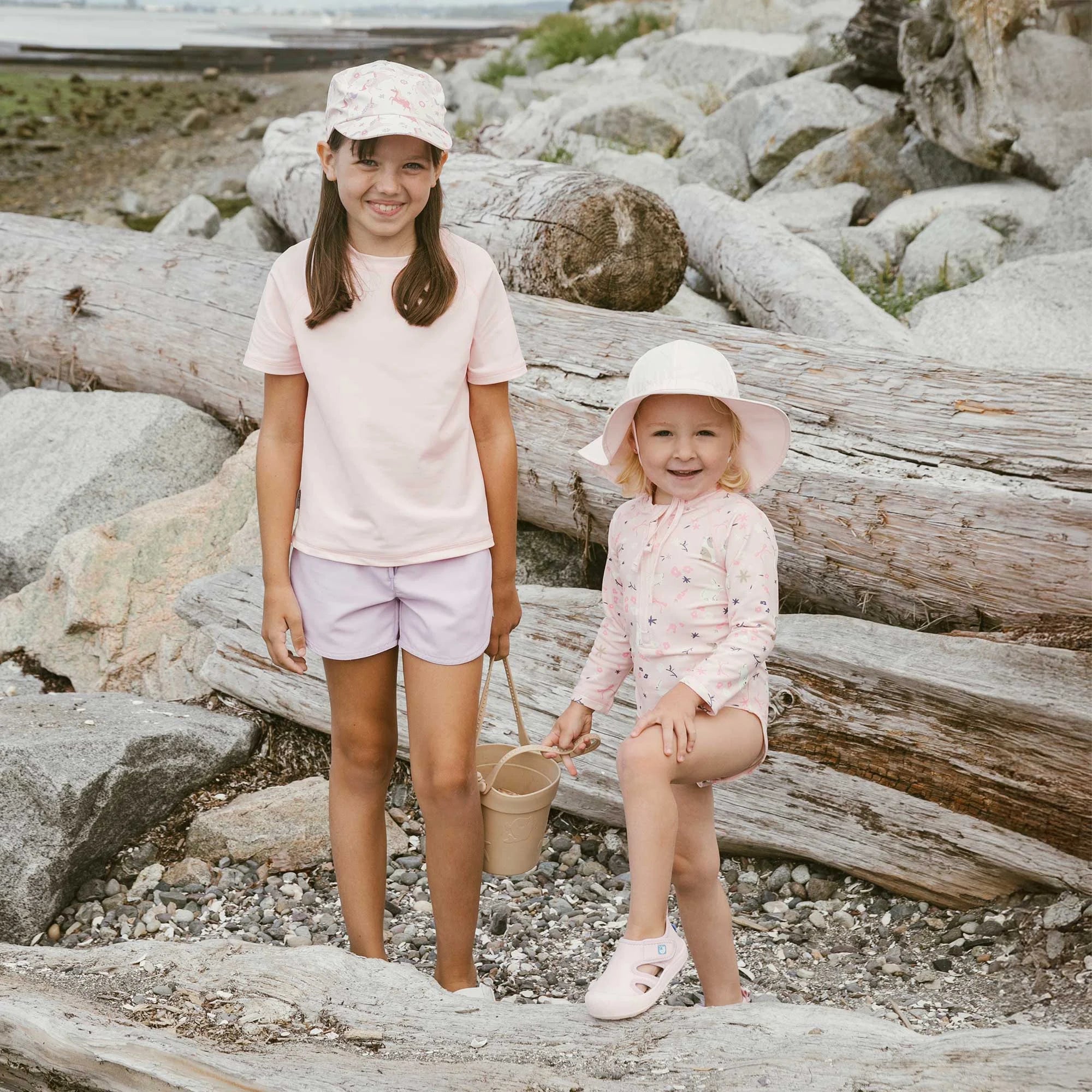 The UV protection on these kids hats comes from the weave of the fabric and construction of the hat. Rated UPF 50+ and safe for kids with no harmful chemicals, dyes, solutions, PFAS or fluorocarbons. Made with 100% cotton for breathable comfort on hot, sunny days. With tons of adorable prints and colours to choose from, your little explorer will love picking their favourite!