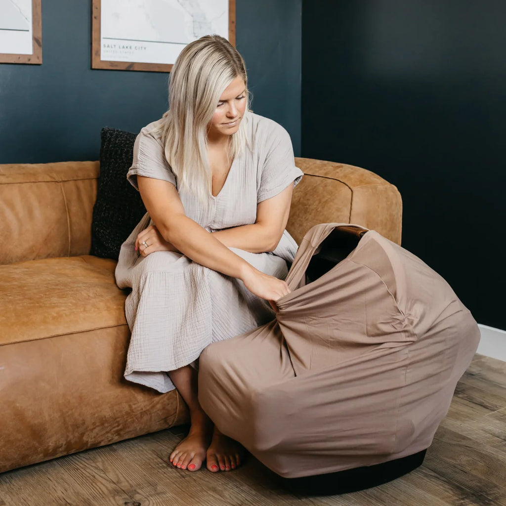 The Copper Pearl Bloom 5-in-1 Multi-Use Cover offers functional versatility for both you and baby. Premium stretchy fabric design helps protect your child from the elements in a car seat and also doubles as a handy cover when nursing baby.