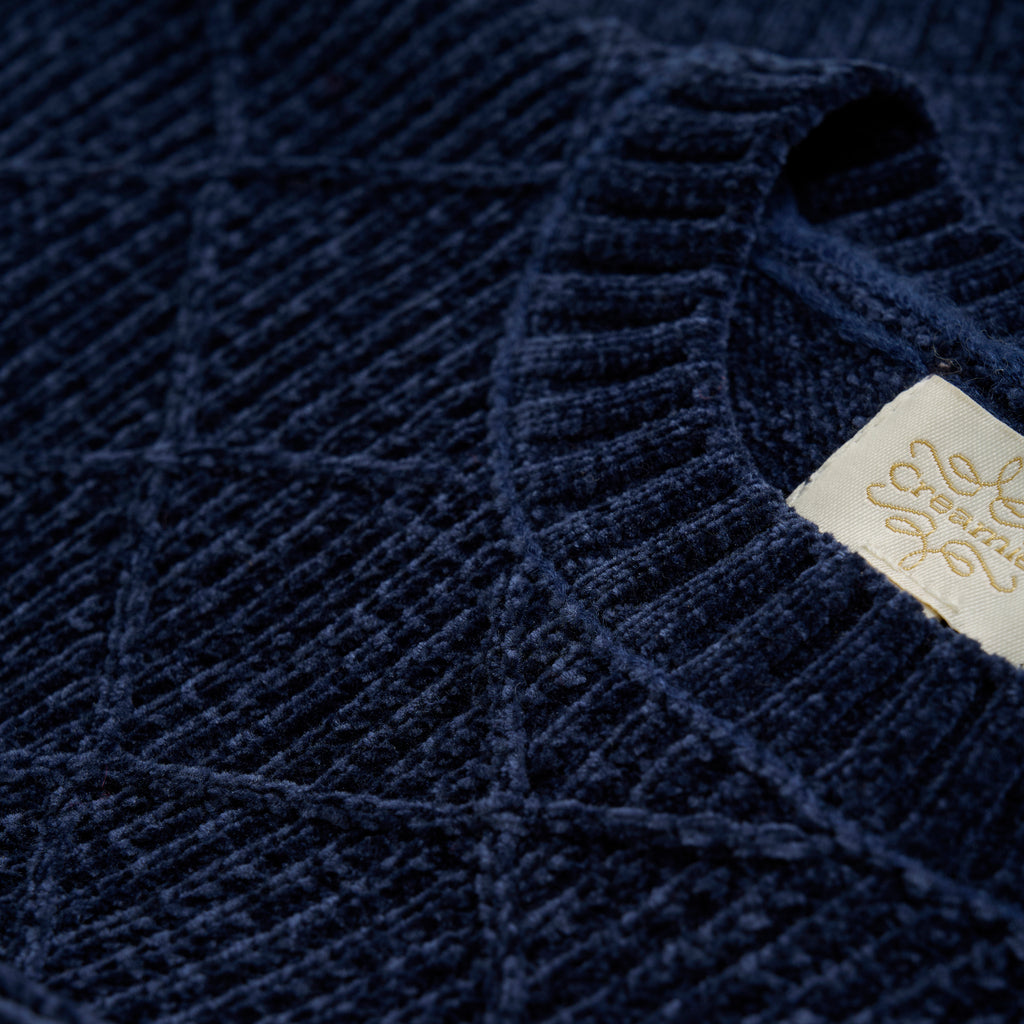 Classic knit sweater with checkered pattern from Creamie in Chenille yarn. The sweater has long sleeves and a round neckline. In the armholes and at the bottom, there are wide ribbed edges. The blouse is made in a delicious and soft quality.