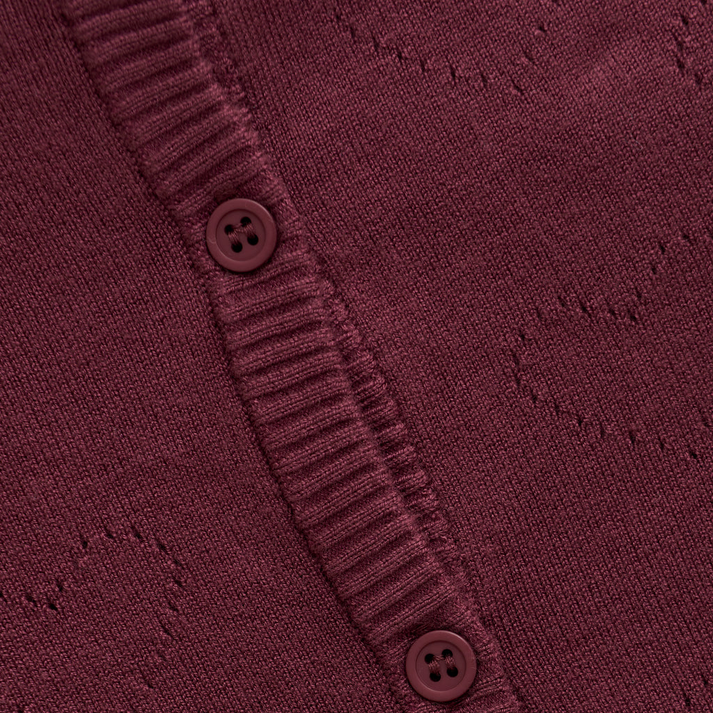 Lovely cardigan from Creamie. The cardigan opens with buttons and has a fine knitted hole pattern on the front. It has ribbed edges in all openings and it is made in a fine, thin quality.