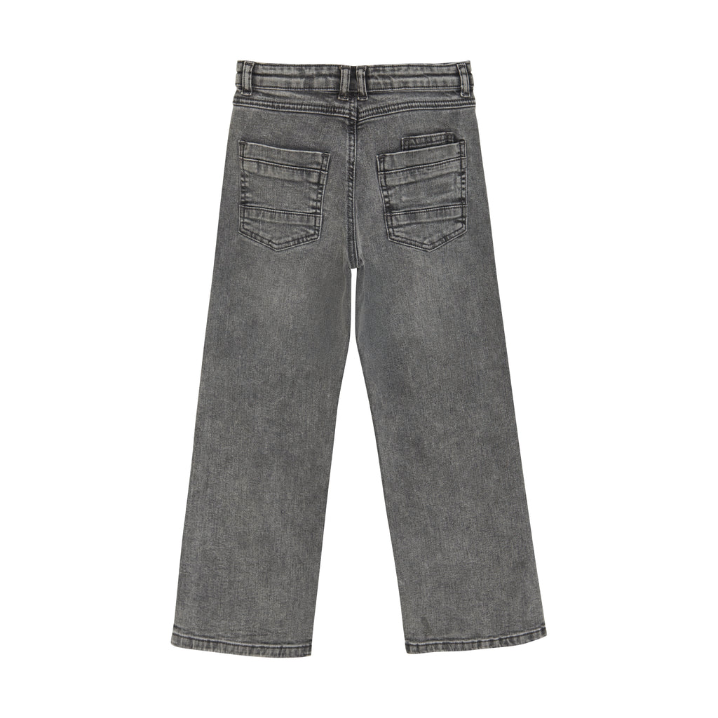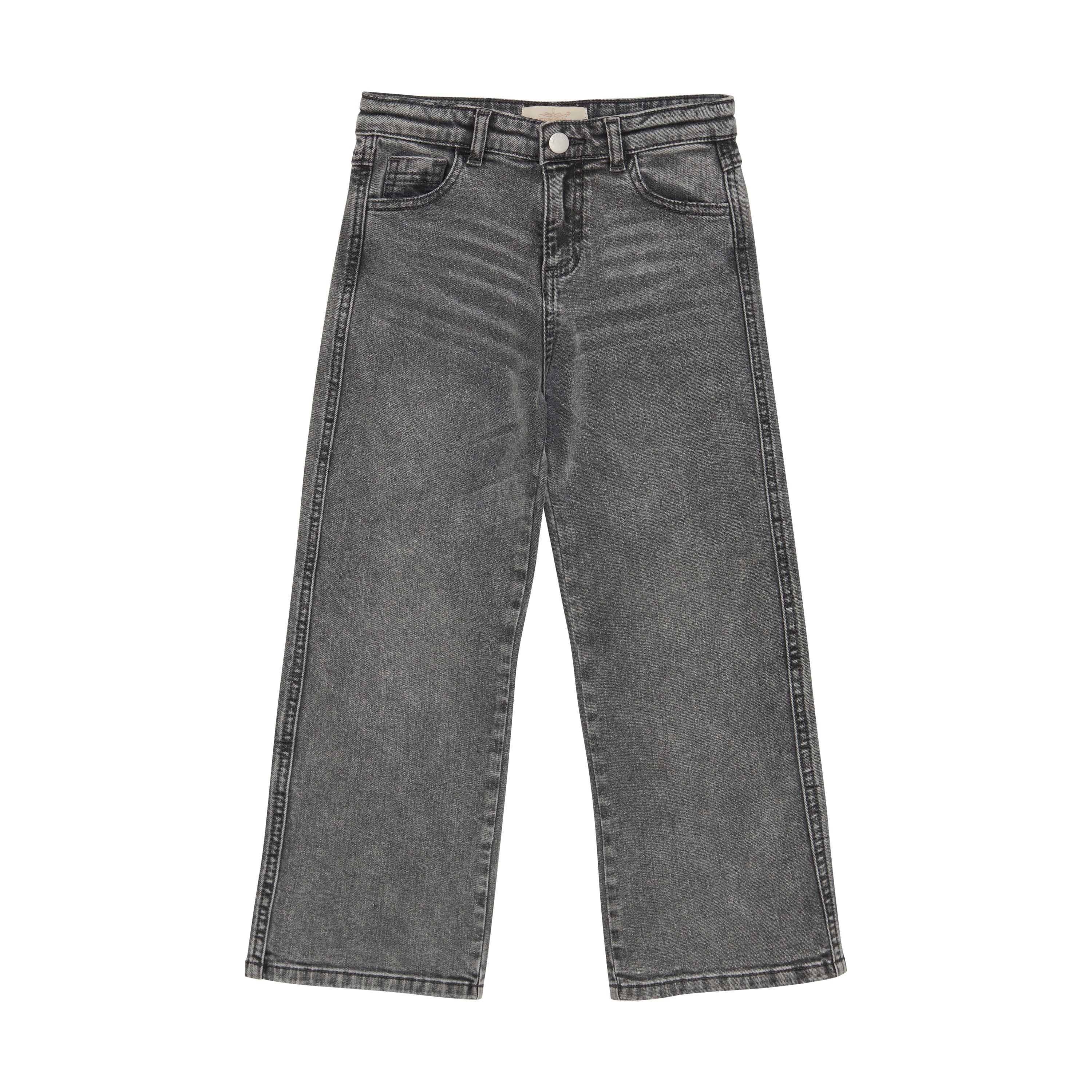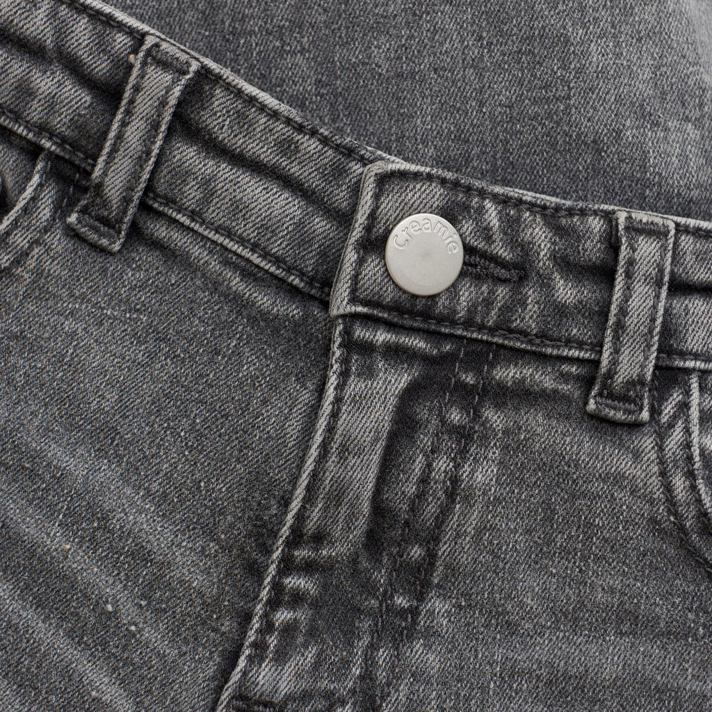 Wide Leg Denim Jeans from Creamie in a cool washed look and wear effect. The jeans have an internal adjustable elastic at the waist and belt loops. They have classic front and back pockets and a small coin pocket.