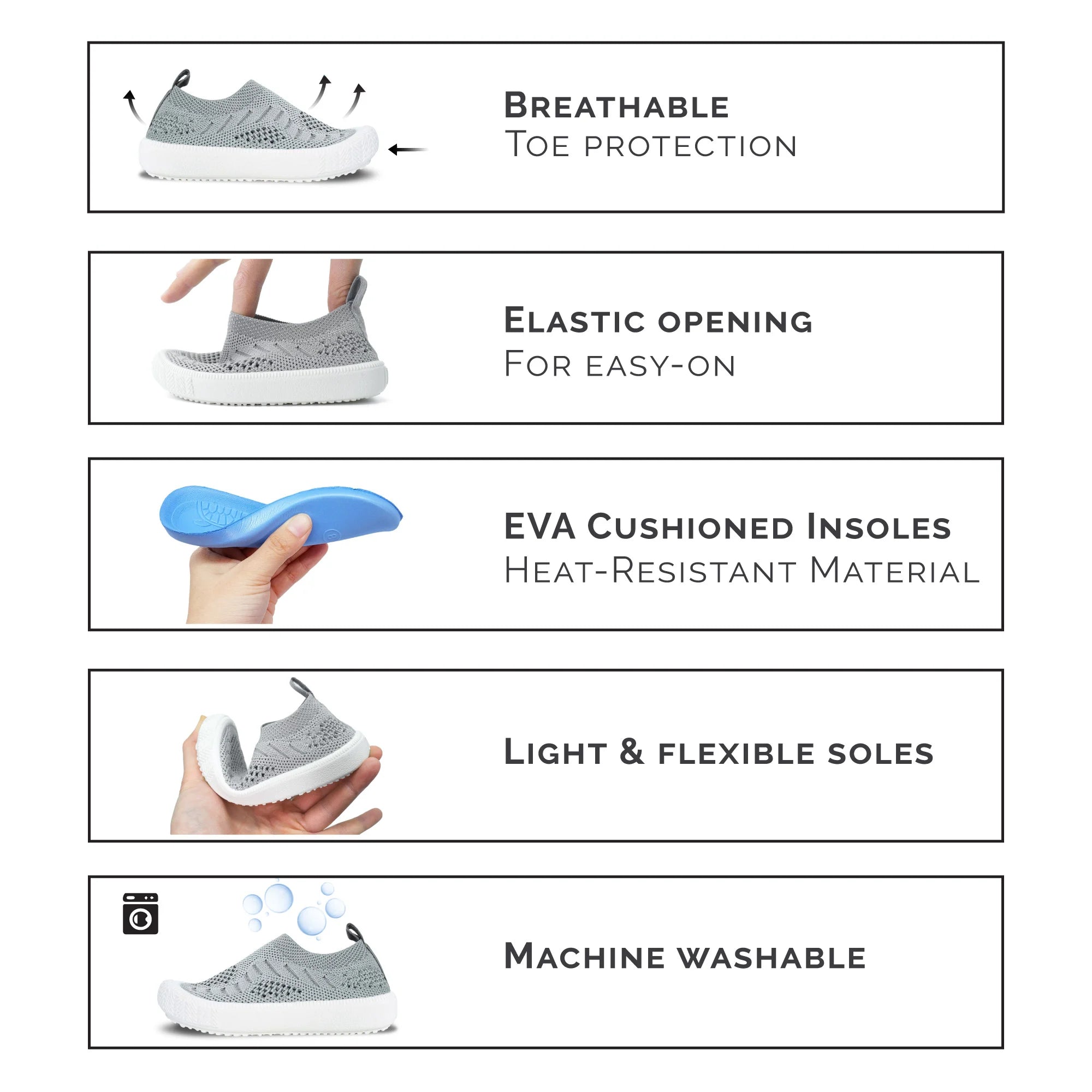 - Breathable: Air-ventilated EVA insole and breathable knit material
