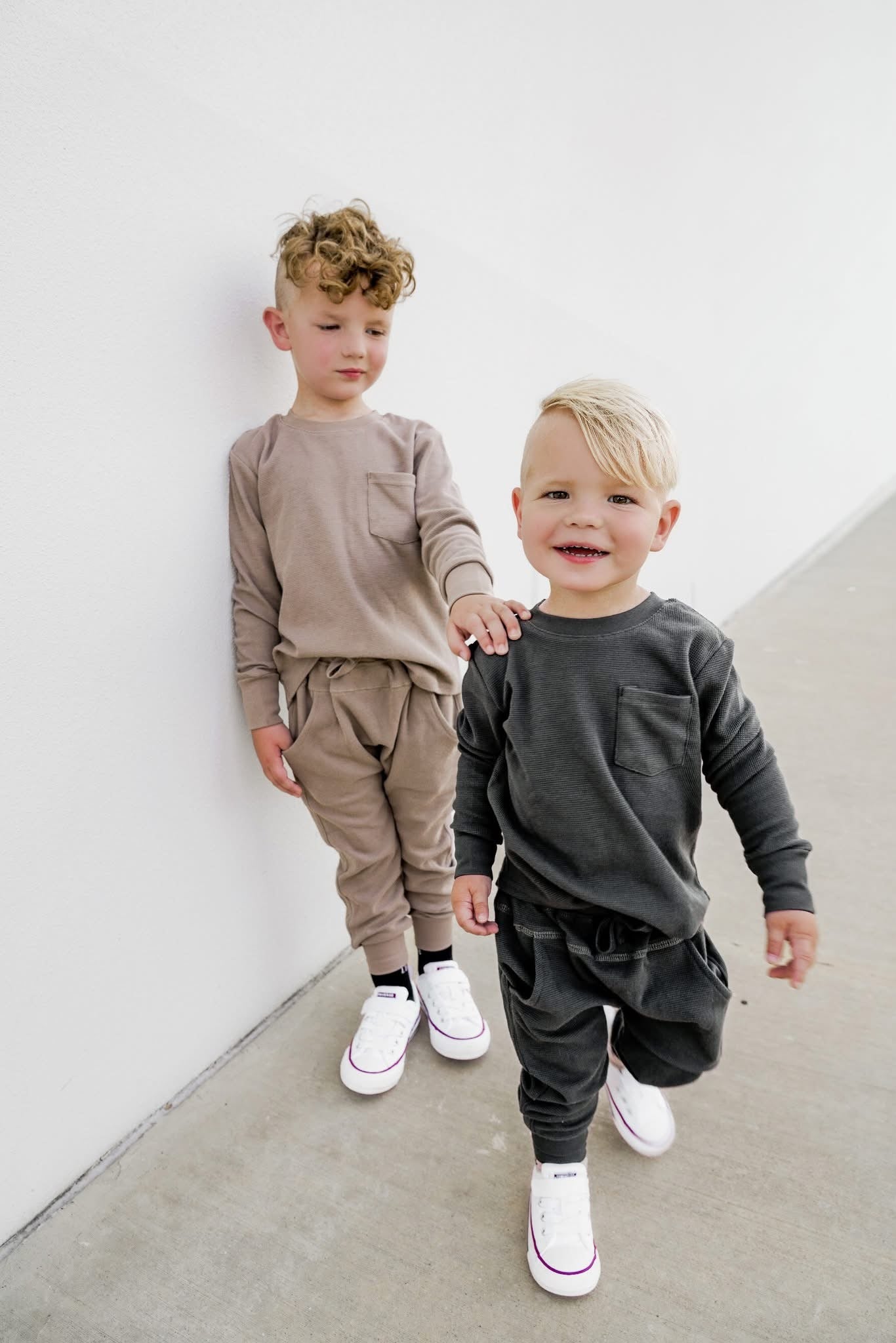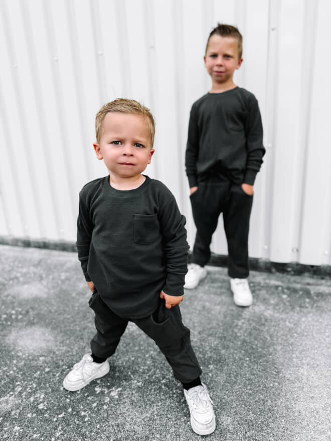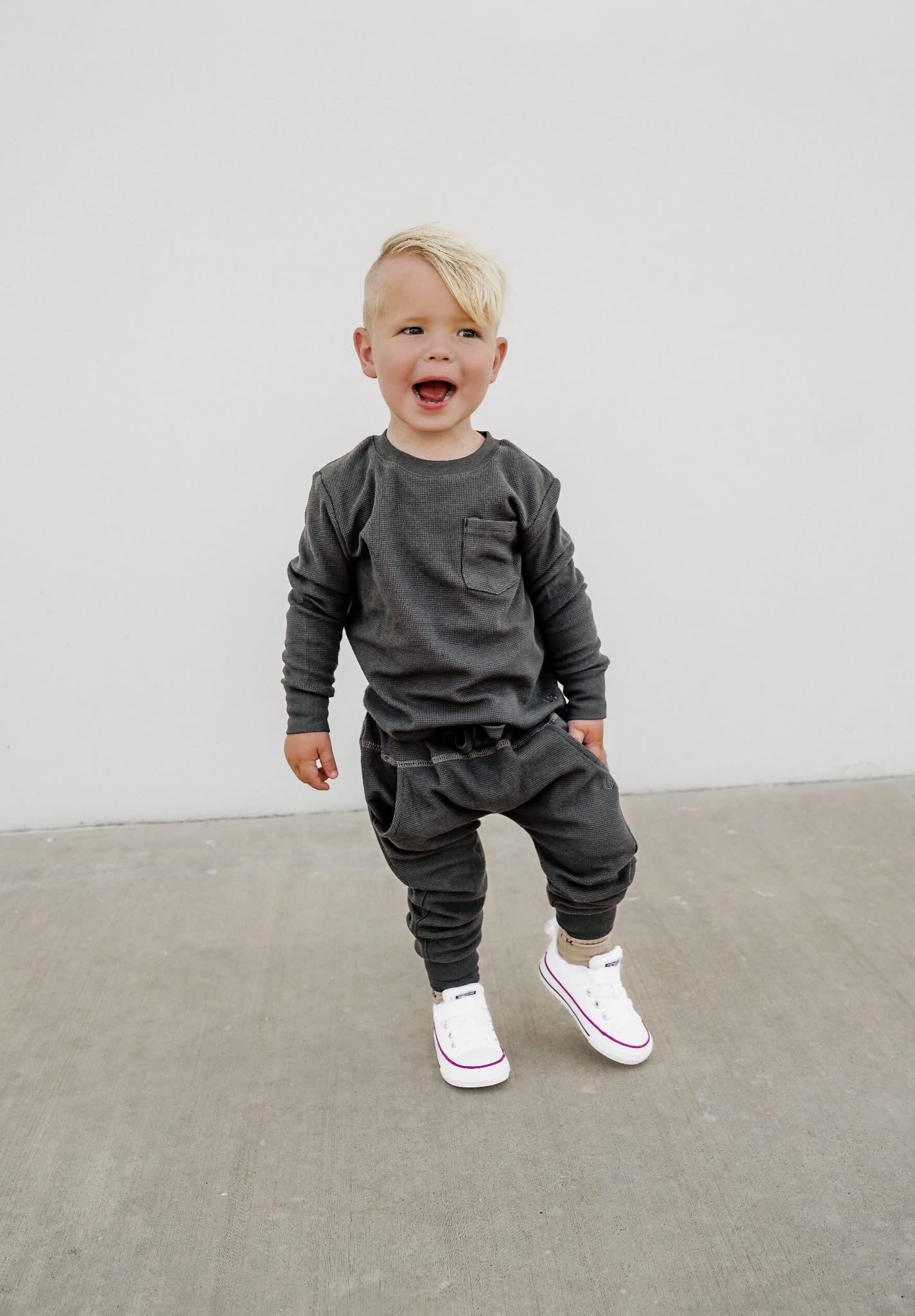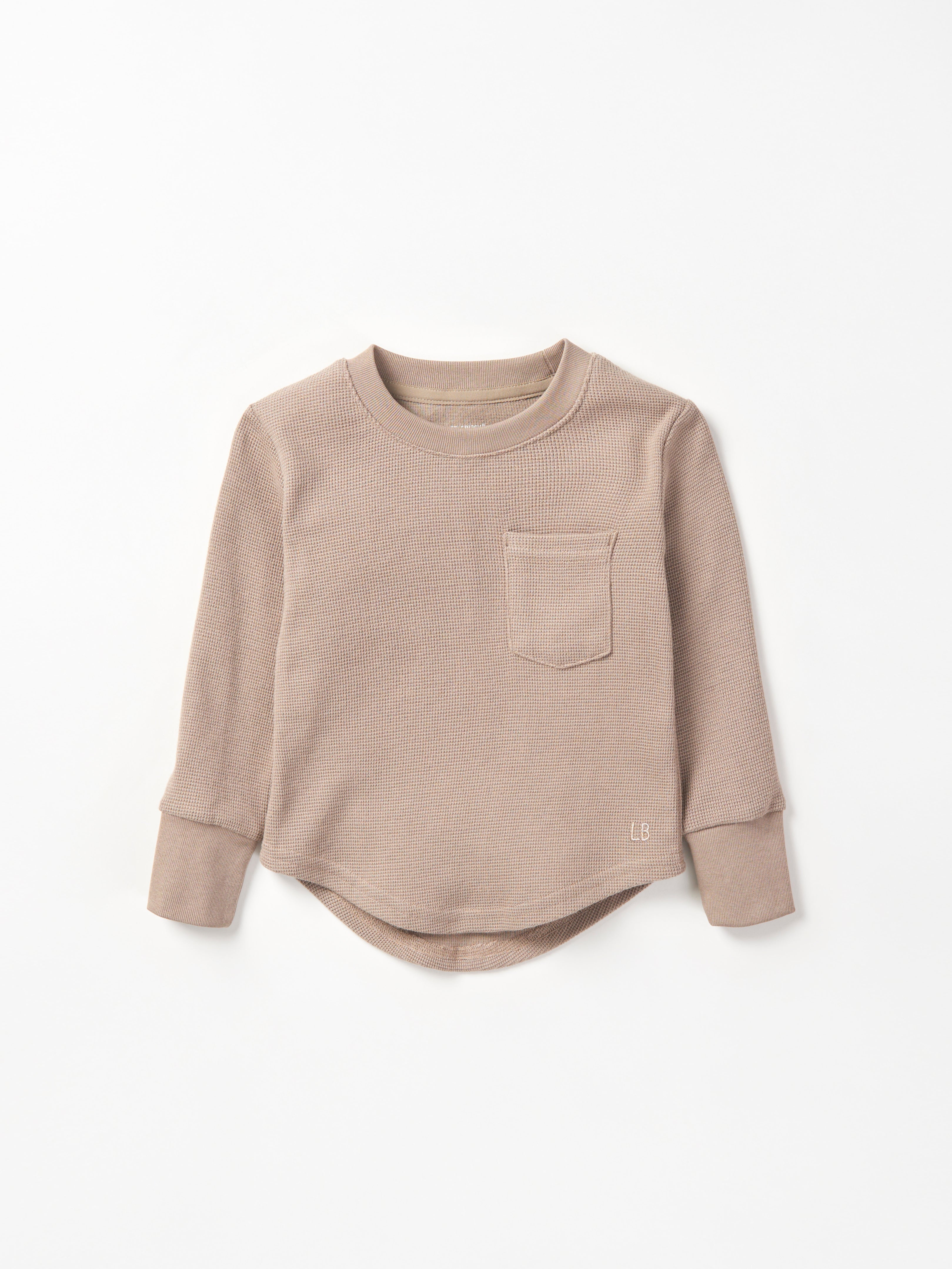 Little Bipsy's signature Waffle is back! Available at Baby Laurel in Shadow and Mushroom, this cozy long-sleeve top offers the perfect balance of comfort and style. Crafted from soft, breathable fabric, it's designed to keep your little one cozy all season long. Available in sizes from 0-3M to 7Y, it’s a versatile staple for layering or wearing solo. Pair with the matching joggers for a complete look!