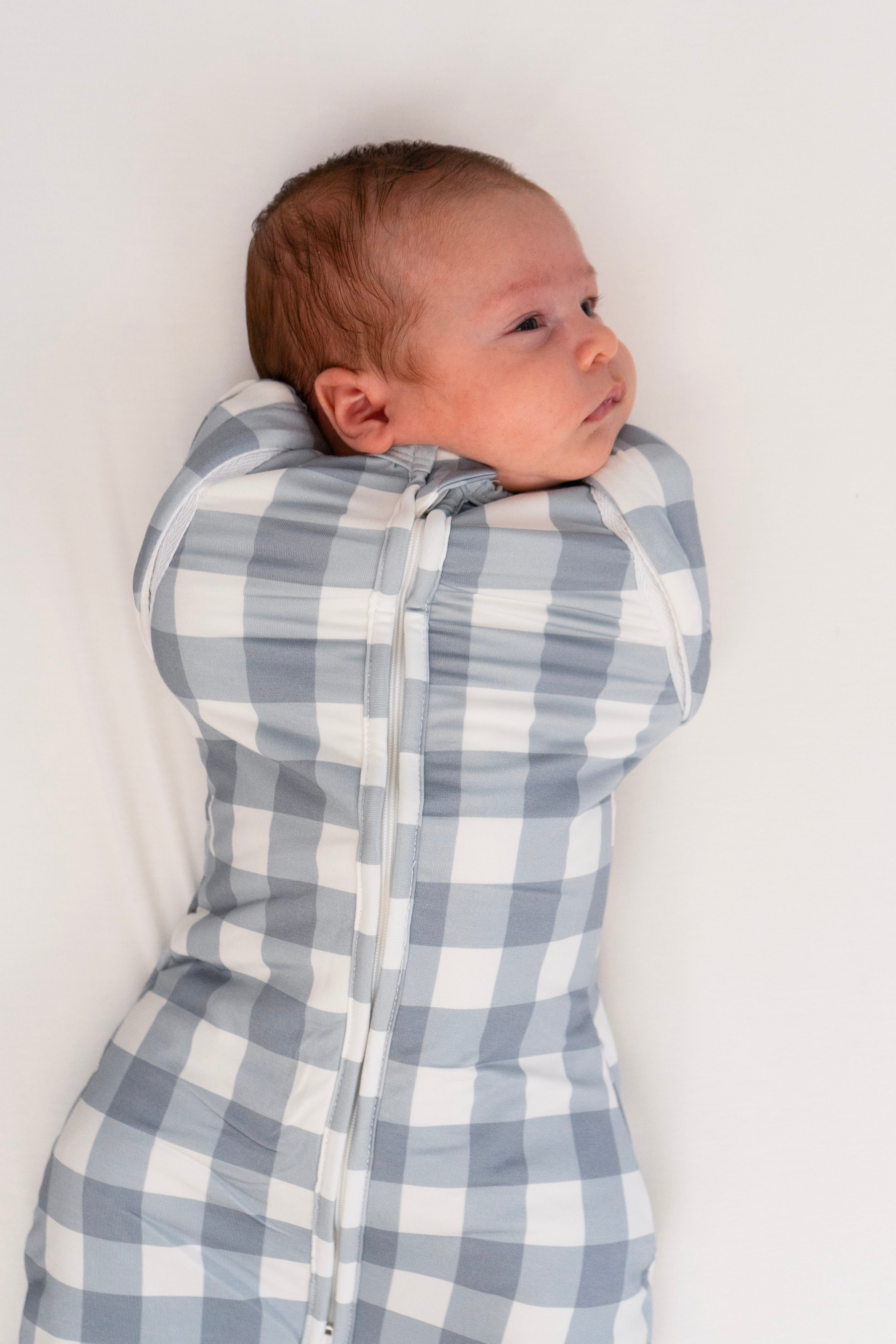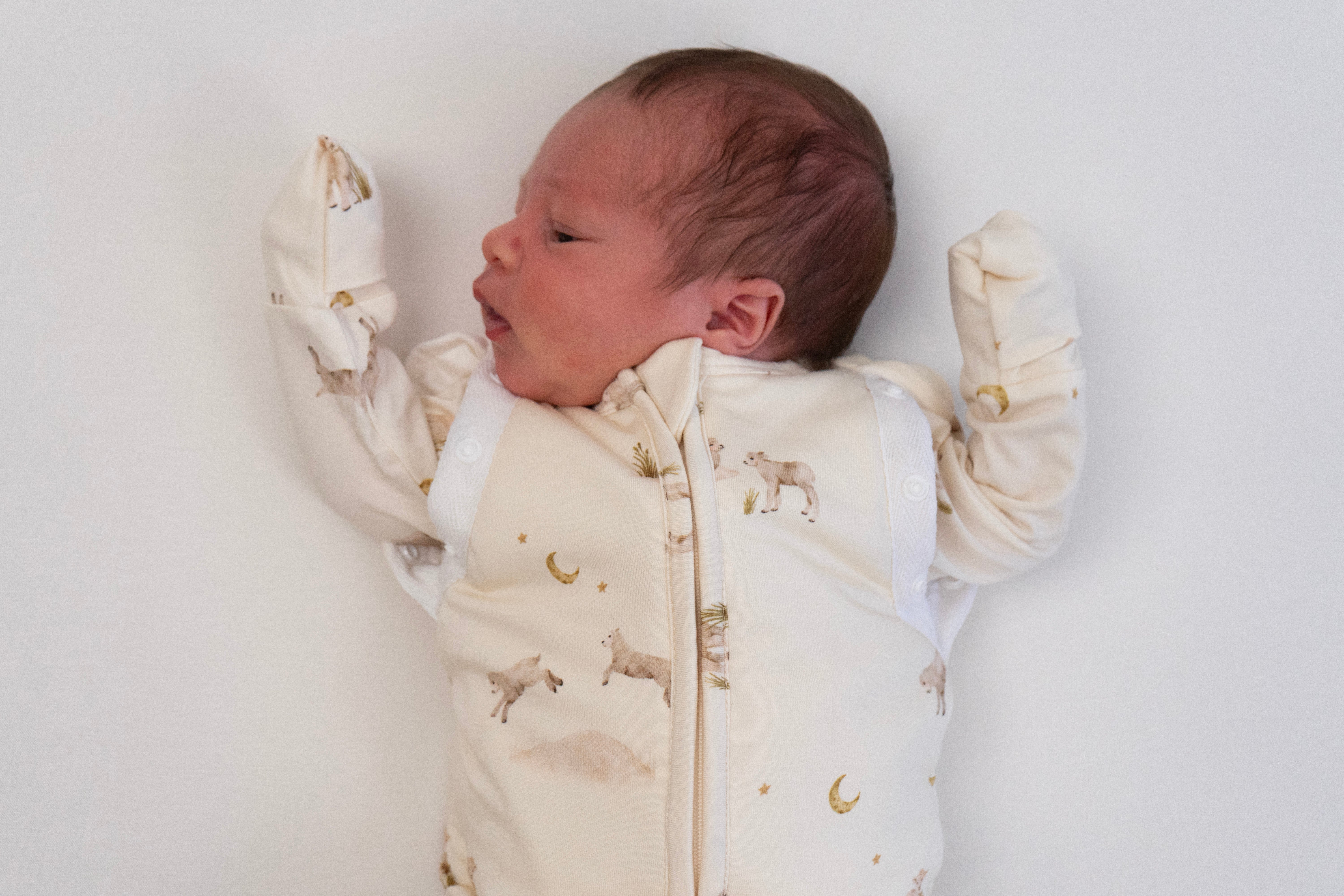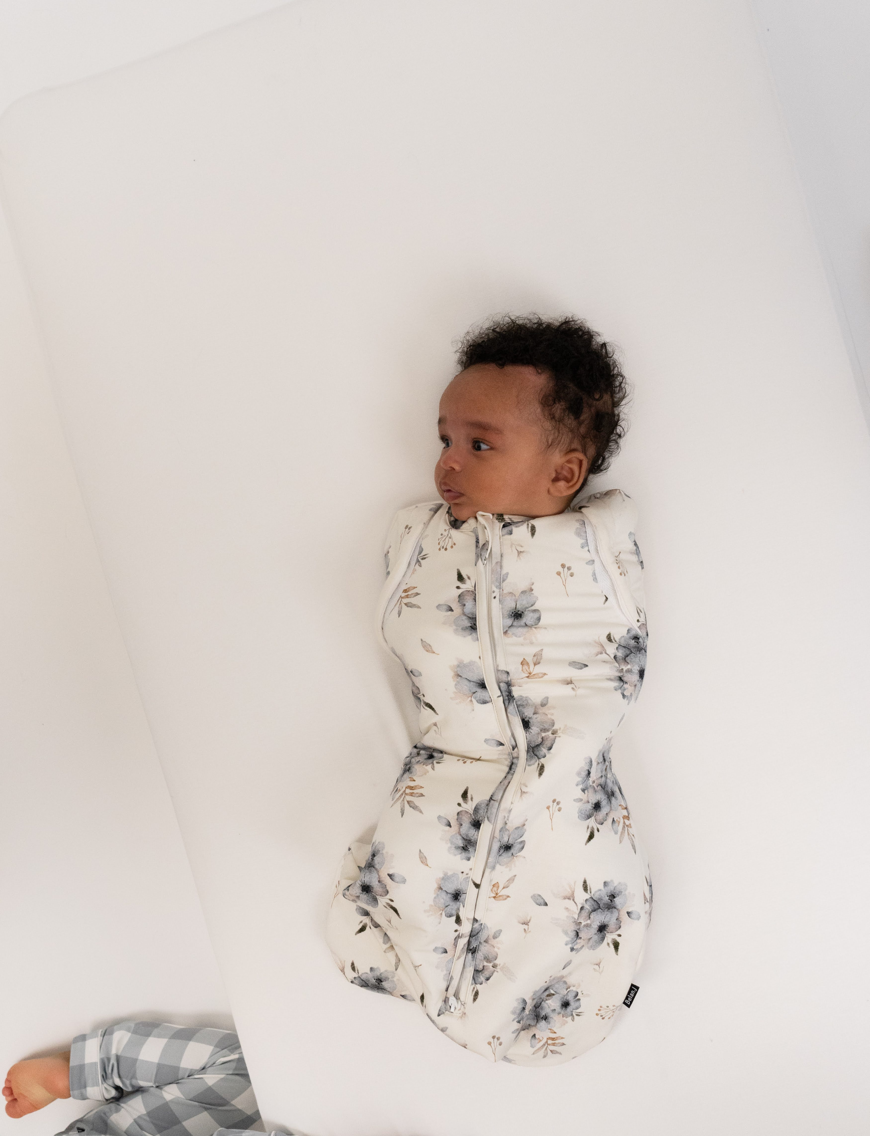 An upgrade to Belan.J's popular Swaddle Sack now with the option to swaddle arms in!