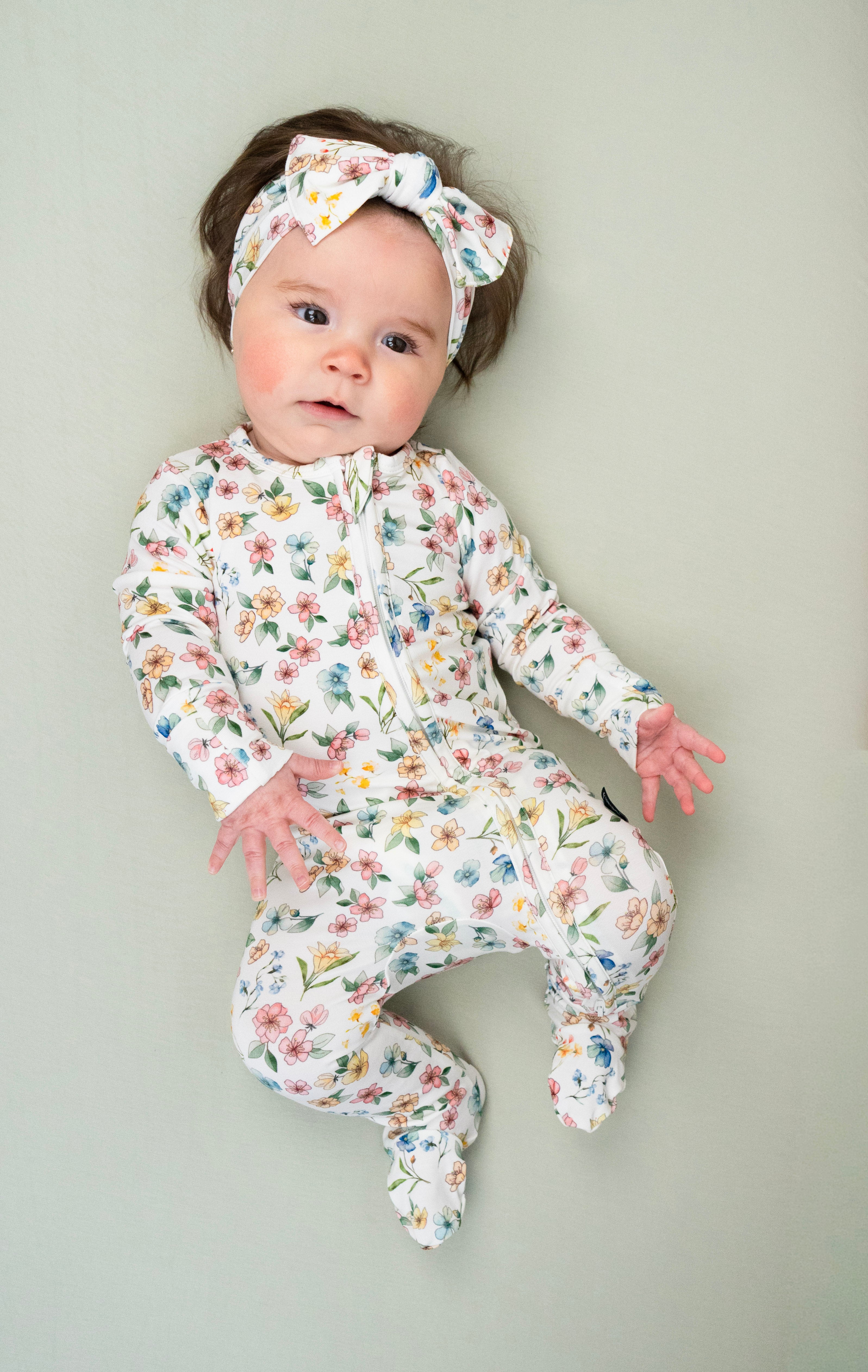 Footed sleeper made in buttery soft bamboo rayon for the perfect night sleep. Bamboo is very breathable and moisture wicking which makes it the ideal fabric for infant sleepwear. 2-way zipper closure makes for easy diaper changes while fold over cuffs* and chin guard keep baby safe from scratches and pinches.