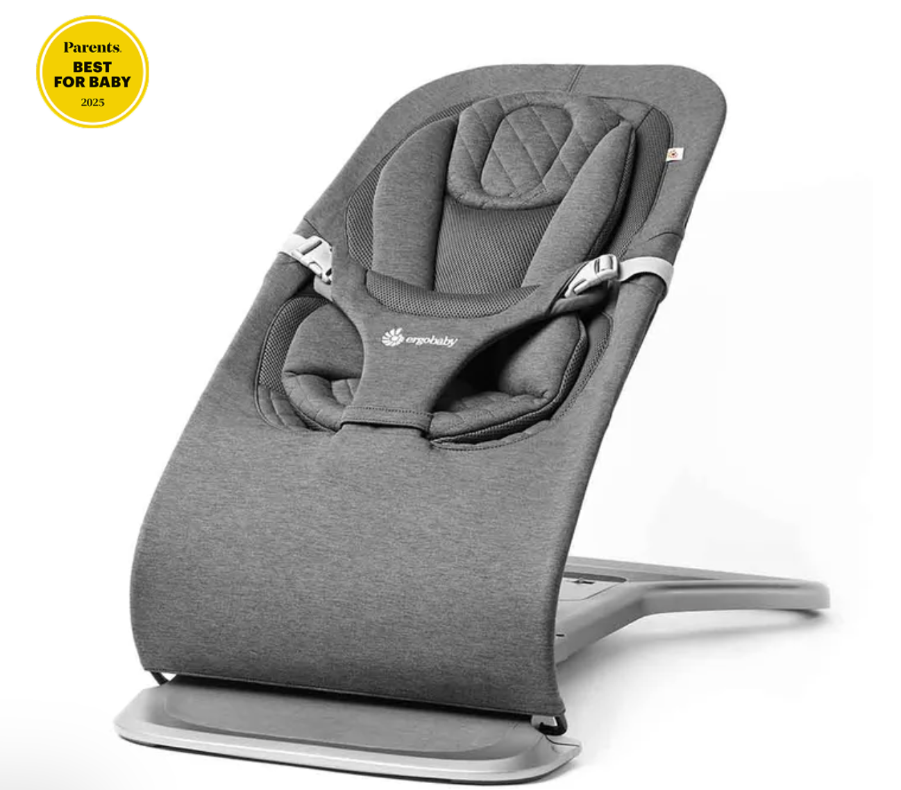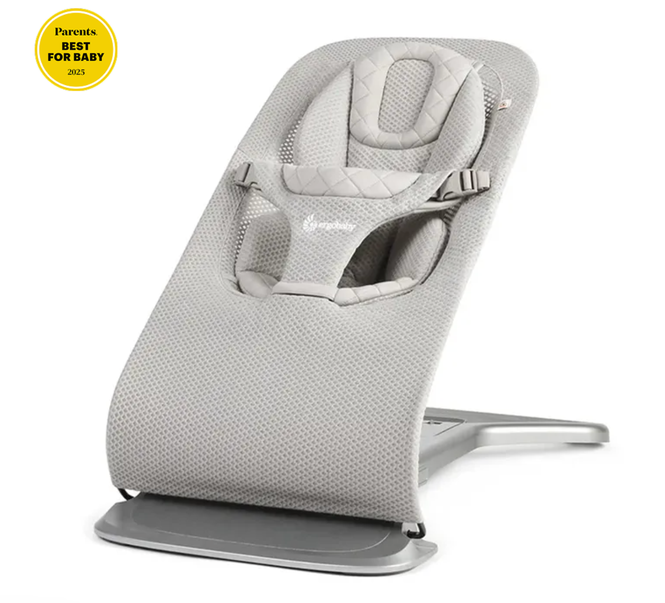 The Ergobaby Evolve Bouncer uses natural rocking technology—so no plugs, batteries, or switches needed. Plus, that means it’s lightweight and easy to move from room to room.