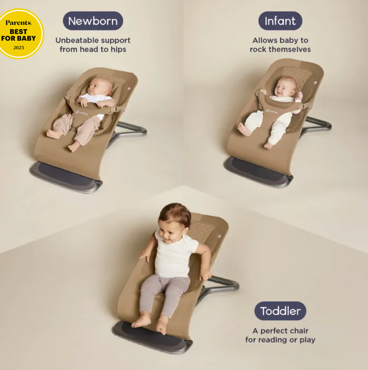 From a cozy newborn lounger…to a relaxing infant bouncer…to a functional toddler seat, the Evolve 3-in-1 Bouncer is made to grow with your little one.