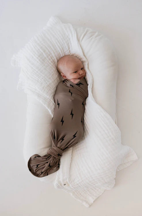 Forever French Baby Bamboo Swaddle - Brown + Black Lightning Bolt