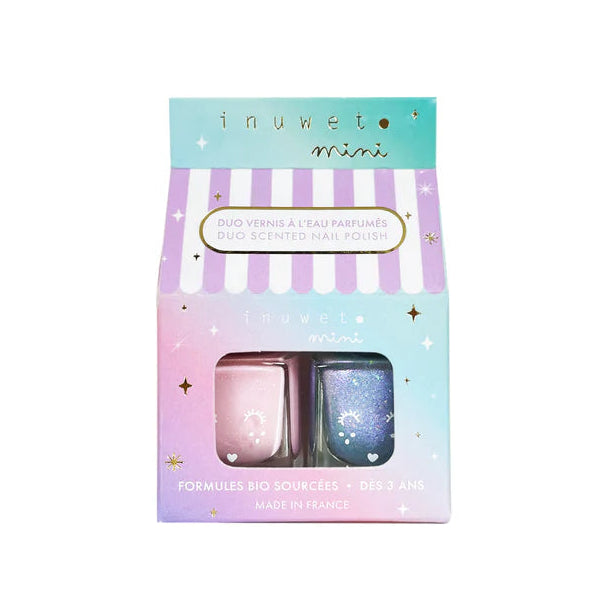 - One Doll Pink polish with a watermelon scent and one Princess Blue polish with a vanilla scent